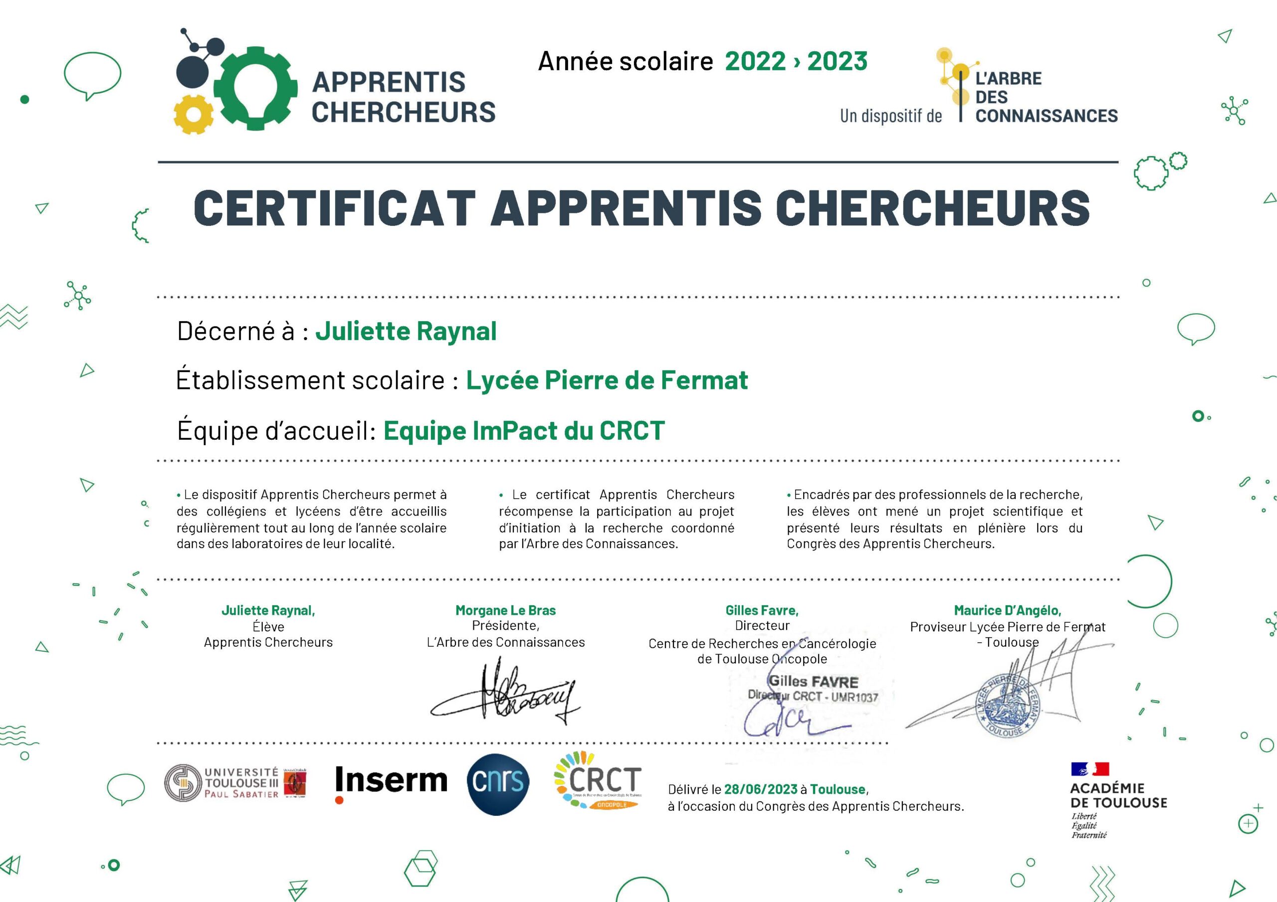 - Juliette Raynal – 1ère Lycée ¨Pierre de Fermat – Toulouse