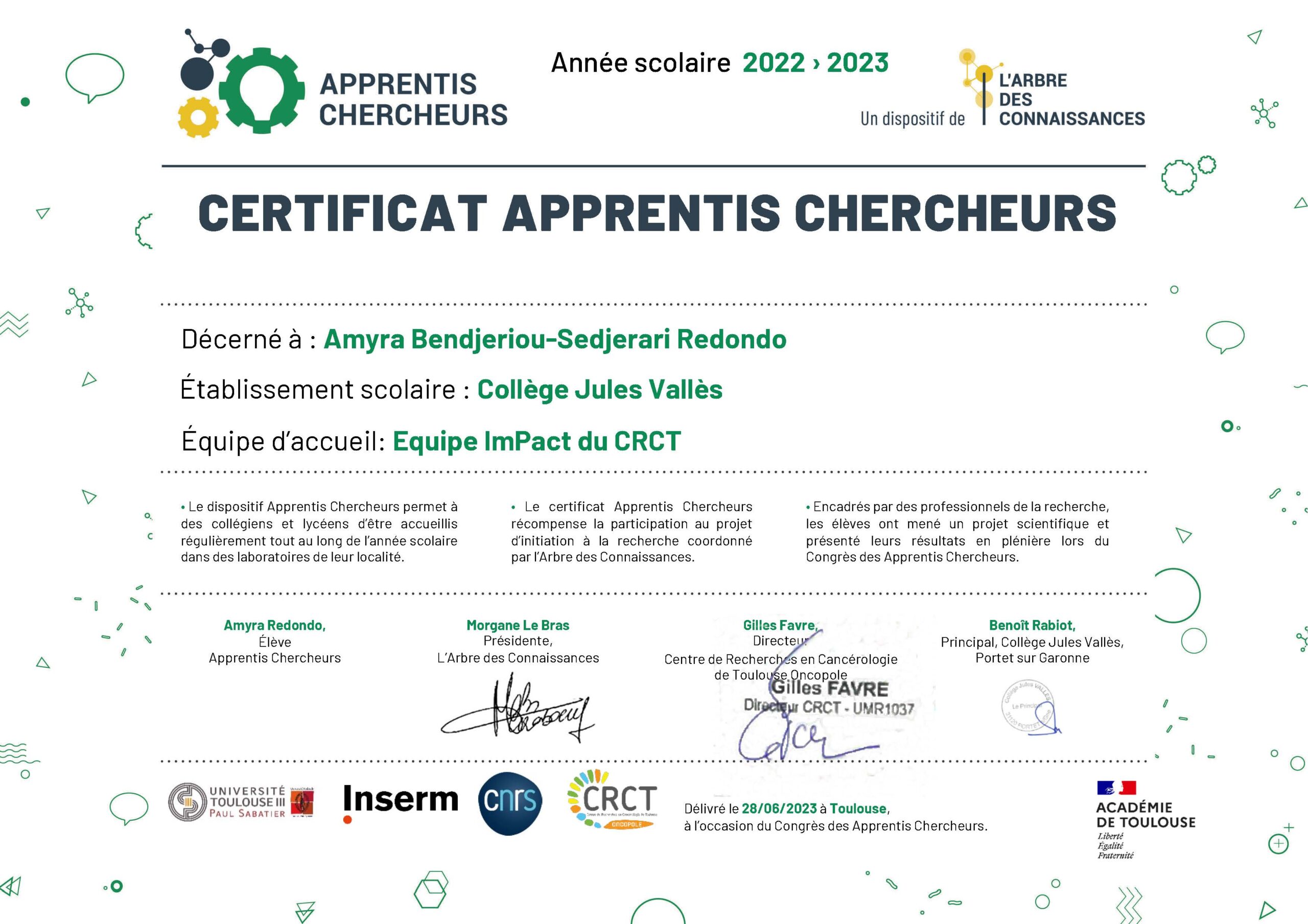 - Amyra Bendjeriou-Sedjerari Redondo – 3e Collège Julles Vallès – Portet sur Garonne