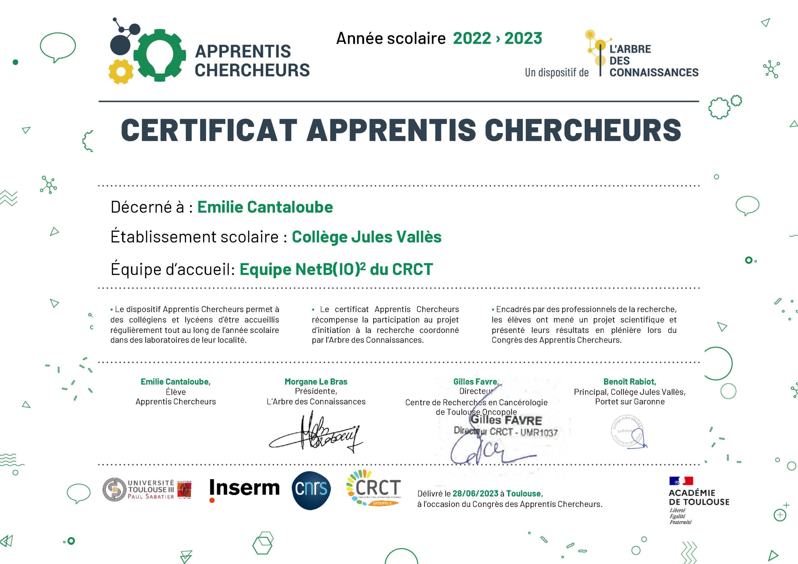 - Emilie Cantaloube – 3e Collège Julles Vallès – Portet sur Garonne