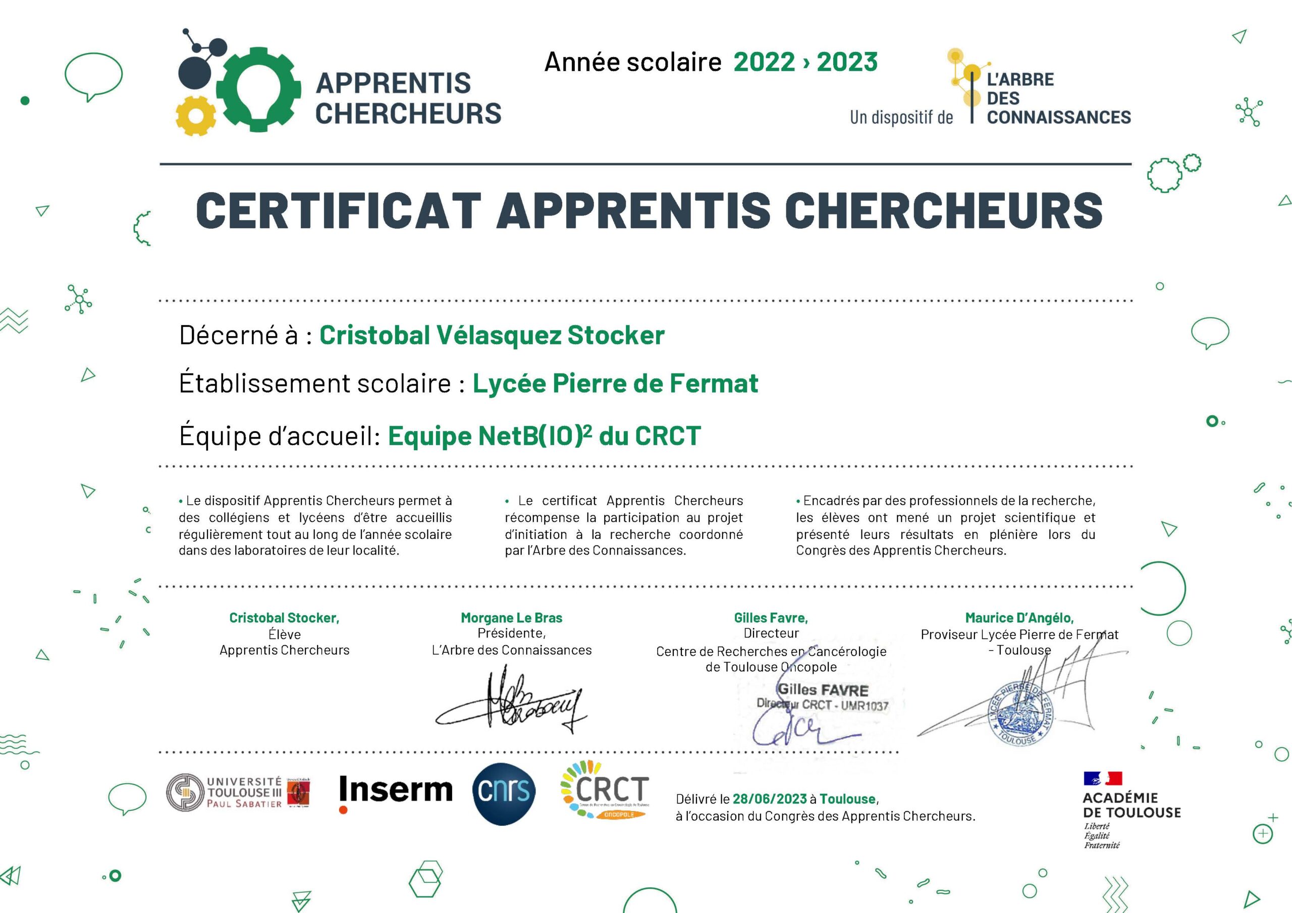 - Cristobal Vélasquez-Stocker – 1ère Lycée ¨Pierre de Fermat – Toulouse