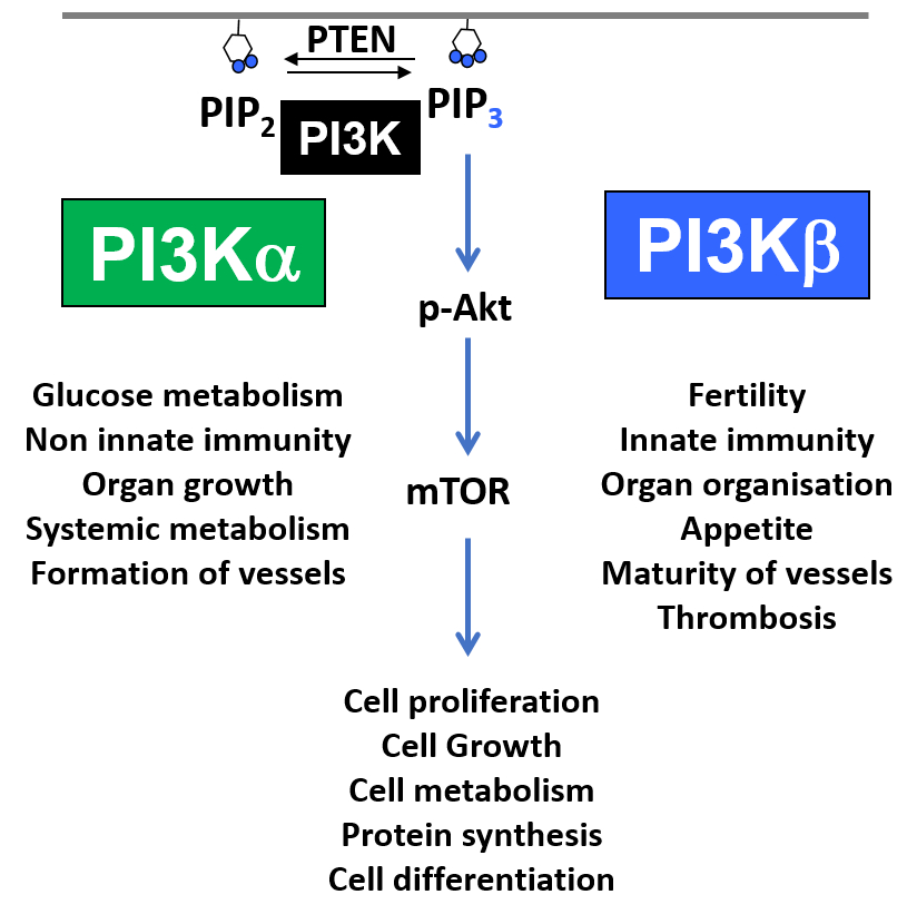 The cell signalling enzymes PI3Kalpha and PI3Kβ play major roles in the body.