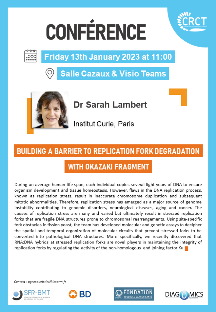 Conférence : Building a barrier to replication fork degradation with Okazaki fragment, Dr Sarah Lambert (Institut Curie)