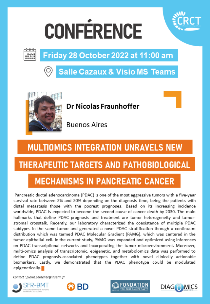 Conférence Dr Nicolas Fraunhoffer : Multiomics integration unravels new therapeutic targets and pathobiological mechanisms in pancreatic cancer