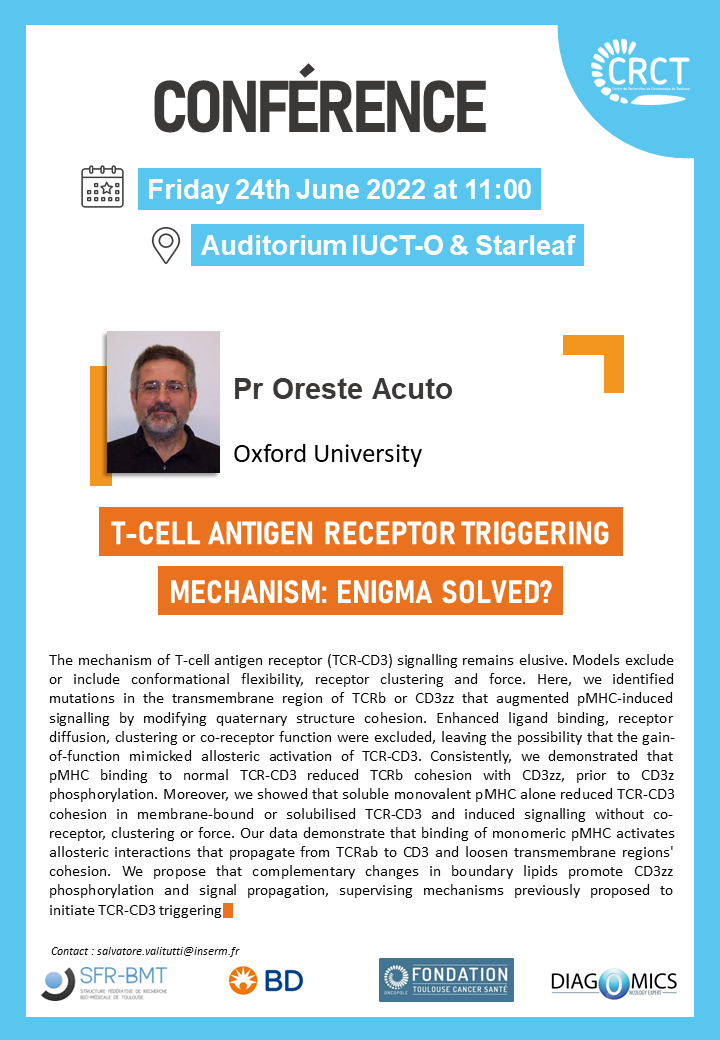 Conférence Pr Oreste Acuto : T-cell antigen receptor triggering mechanism: enigma solved?