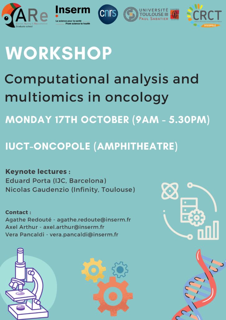Le lundi 17 octobre aura lieu une journée dédiée aux applications bioinformatiques en biologie lors d’un workshop intitulé « Computational analysis and multiomics in oncology » ; à l’amphithéâtre de l’IUCT-Oncopole (1 avenue Joliot-Curie, 31100 Toulouse). Ce workshop est ouvert à toute la communauté scientifique.
