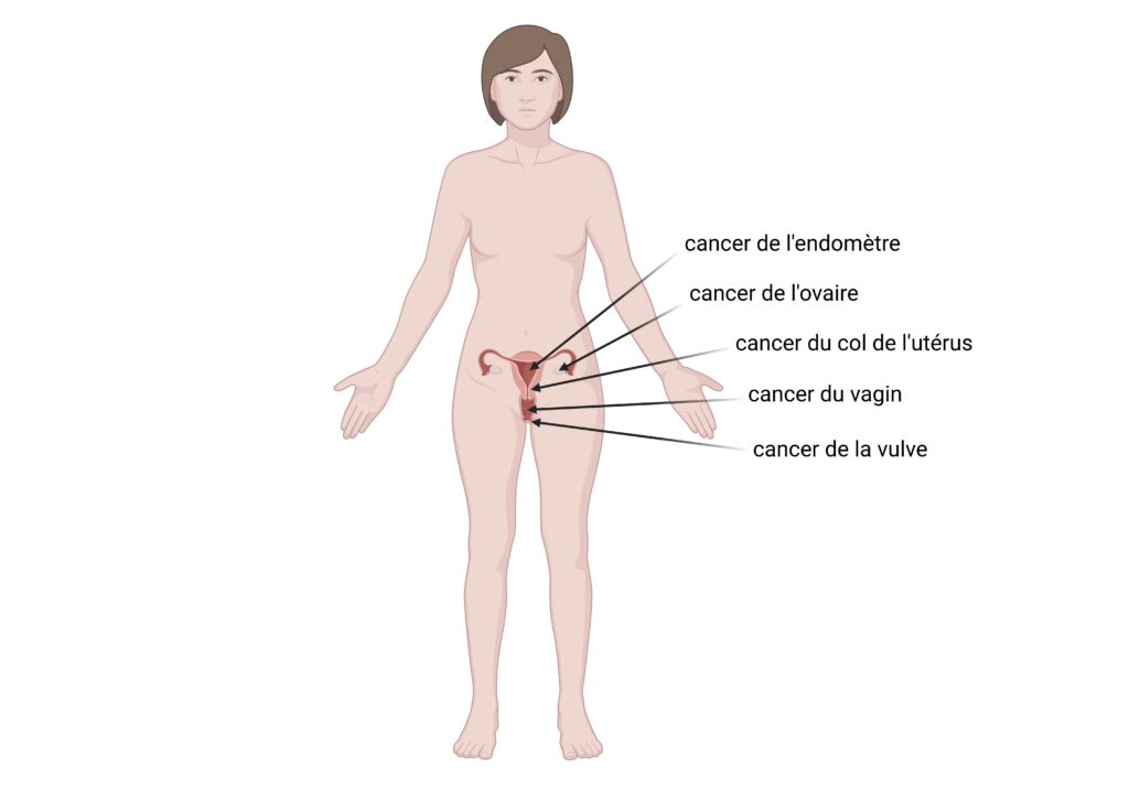 Figure 1 : Les cancers gynécologiques et leur localisation. Schéma réalisé sur BioRender